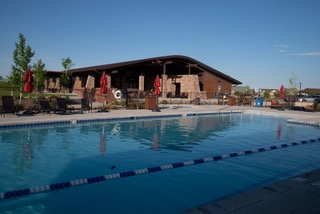 This Colorado Modern clubhouse includes a Movement Studio and Fitness Center with a variety of strength and cardio equipment, large kitchen, meeting room, lending library, billiards table, tabletop shuffleboard, covered patio, event lawn, outdoor pool and hot tub, grills, fire pit, and 4 pickle ball courts! Other outdoor spaces throughout the community are also available; dispersed throughout the community are a bocce ball court, horseshoe pit, corn hole, community gardens and several covered seating areas. Enjoy open spaces and miles of maintained trails throughout the community.
